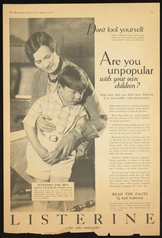Educating the public about shame around bad breath/selling mouthwash (1928). Science History Institute.